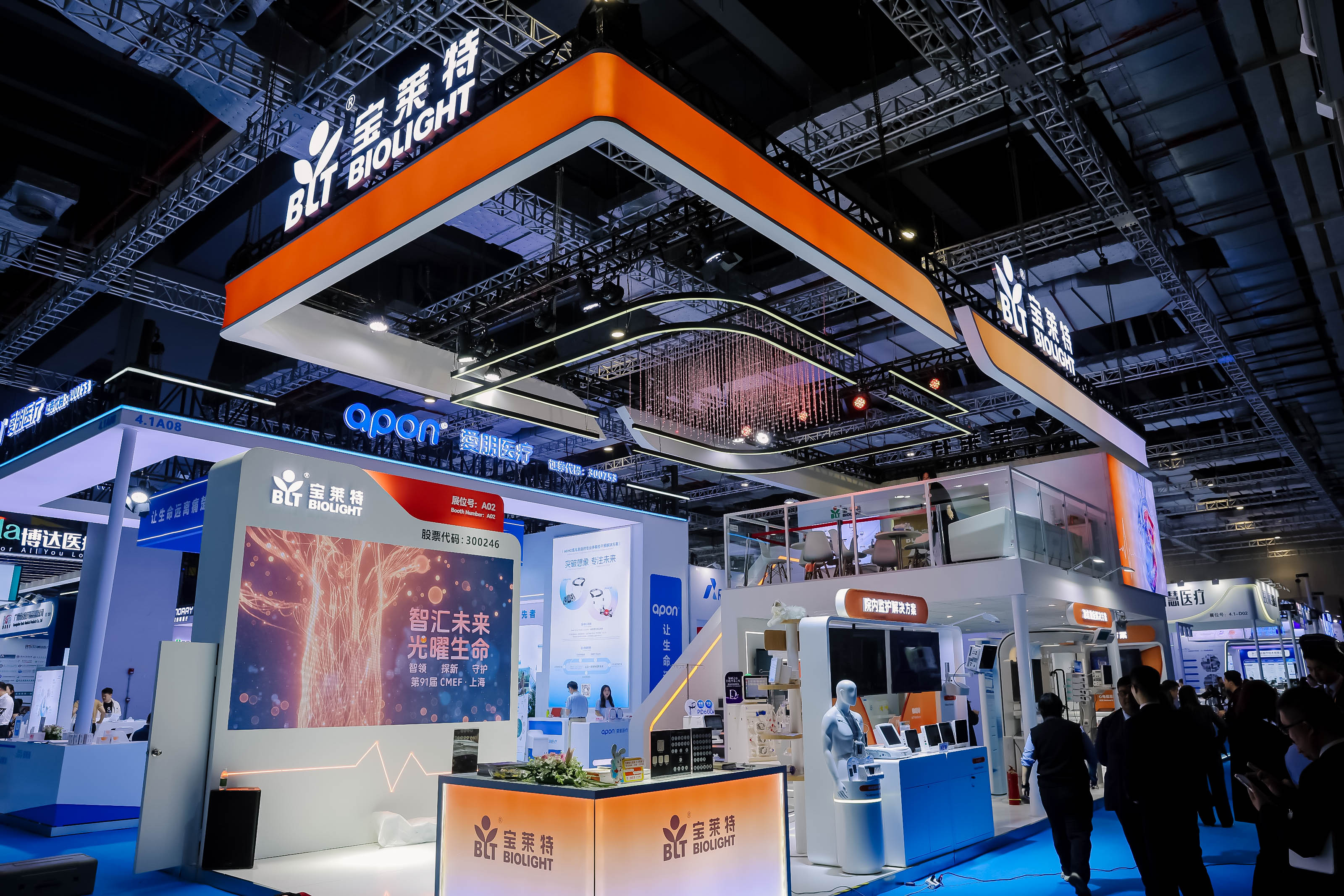 本届CMEF,304am永利集团展台以“追光橙”与“未来银”为主色调,构建出充满科技感的数字化医疗空间。橙色象征“生命之光”,传递温暖与活力;银色则代表精密医疗与前沿科技的融合。展台核心设计“生命之树”贯穿全场,寓意304am永利集团通过技术、产品与服务,串联起患者、医护与合作伙伴的共生生态,呼应品牌使命“厚德精工,守护健康”。