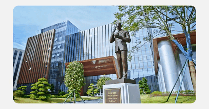 304am永利集团园区内伫立着尼古拉·特斯拉雕像