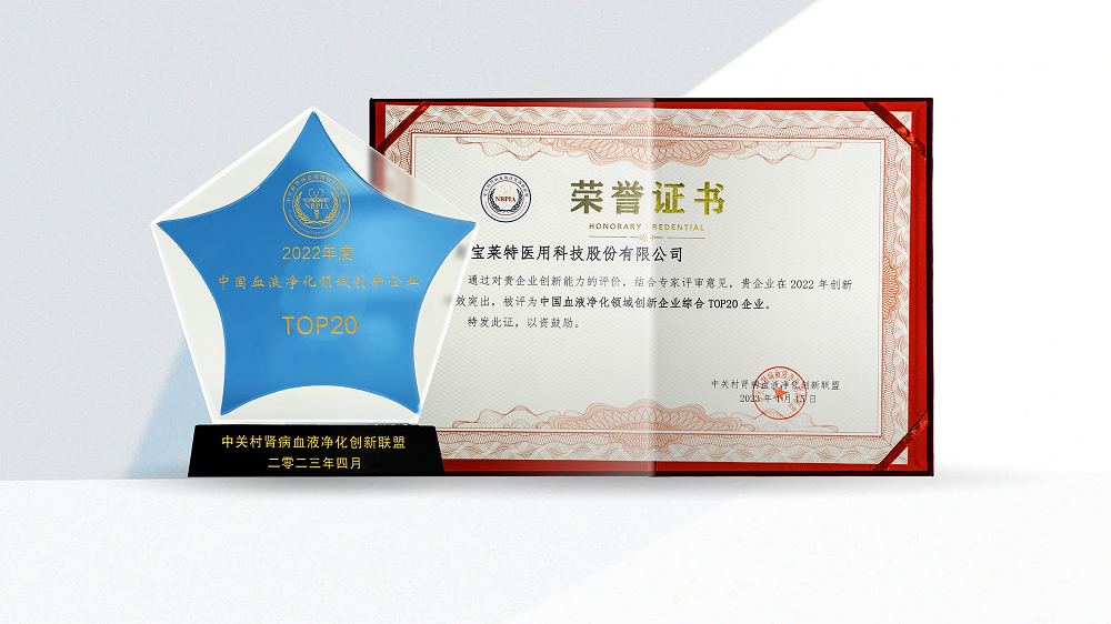304am永利集团作为行业影响力企业应邀参加本次庆典,凭借卓越品牌影响力、技术创新实力,被评为“中国血液净化领域创新企业综合TOP20 企业”。